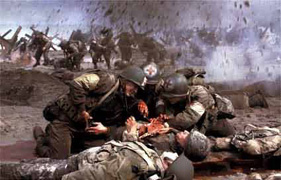 尤其 D 日( 任何军事行动的第一天, 现泛指诺曼第战役 )在奥马哈( Omha Beach )抢滩一役。奥马哈海滩是诺曼底登陆战役中战斗最为激烈的海滩。仅阵亡者就达2500人,因此又称“血腥奥马哈”。电影中开始那一段经典的战争场面就取材自奥马哈海滩。