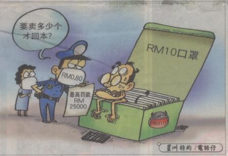 问一间百货商店,一盒内含50个普通的口罩的竟然叫价马币39元!(下文价格全以马币计)