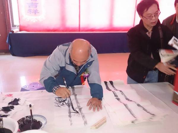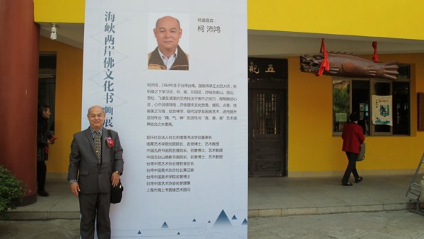 南菁藝術鑑賞報─南菁藝術學院柯沛鴻院長廈門石室禪寺慈善書畫義賣現場宣傳看板、義賣畫作、義賣金額、現場揮毫