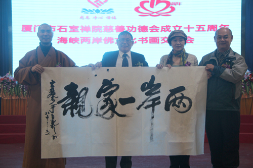 南菁藝術鑑賞報─石室禪院慈善功德會成立15週年系列活動之海峽兩岸佛文化書畫展贈送兩岸一家親墨寶於忠明住持