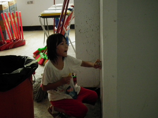 第二組是行政班的大哥哥大姐姐,他們每天在山上都要做很多的事情,像是隨堂跟課、拍照攝影、設計海報節目單、發新聞稿聯絡媒體的同時,更要輪值每天下廚煮飯給大家吃。因為行政班的哥哥姐姐很辛苦,所以我也會在旁邊跟著幫忙。來這裡的第一天,我學到很多像是幫著哥哥姐姐打電腦、掃地、拖地、倒垃圾、洗衣服、曬衣服、照顧山上的小狗,如今回想起來覺得自己很有成就感。
