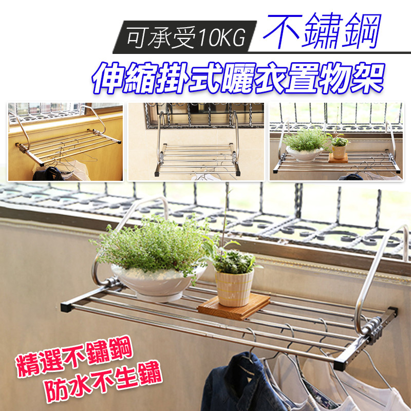 不銹鋼伸縮掛式曬衣置物架(承重10KG)