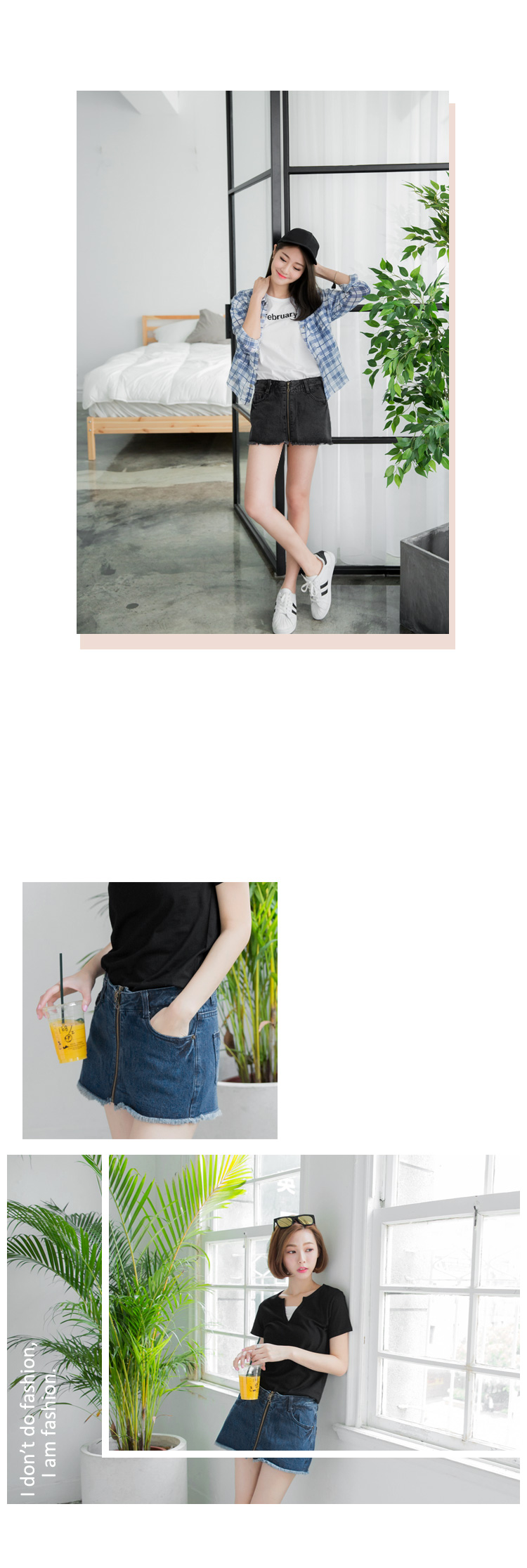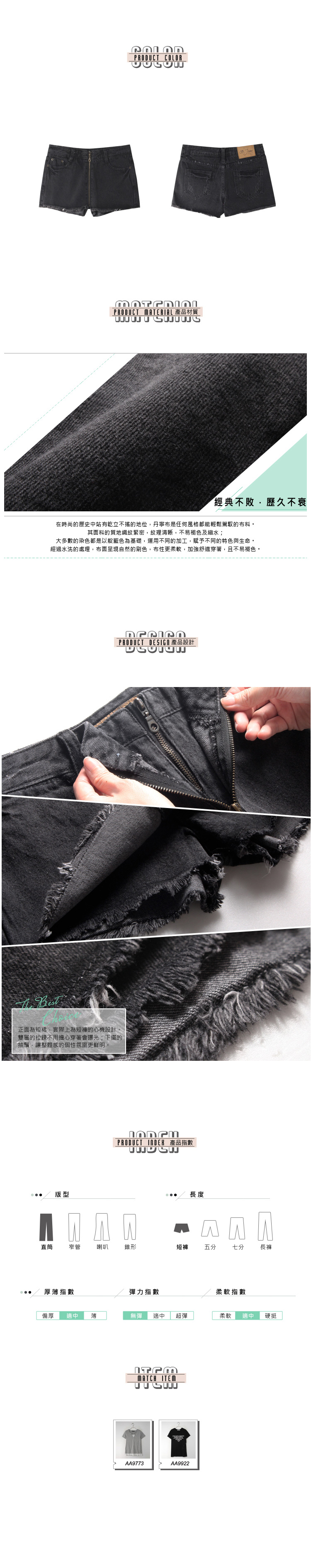 0615新品 雙層拉鍊造型前片拼接牛仔短褲.2色