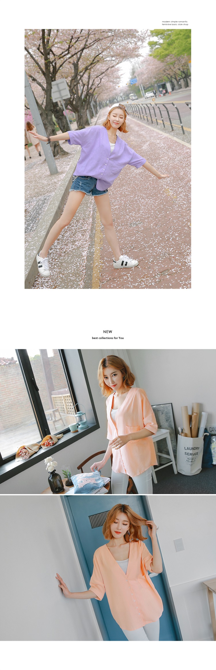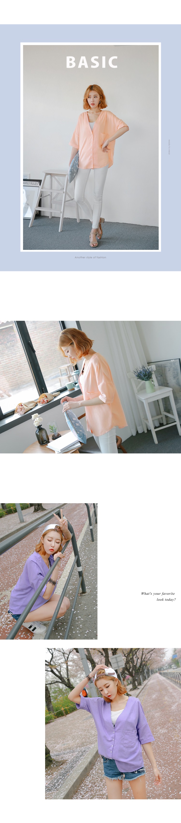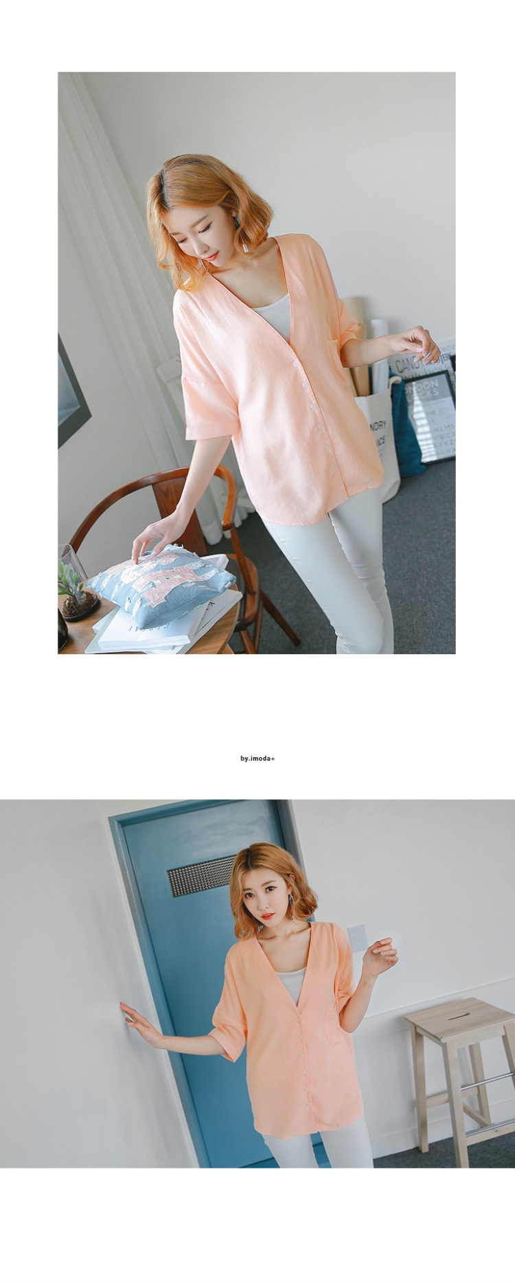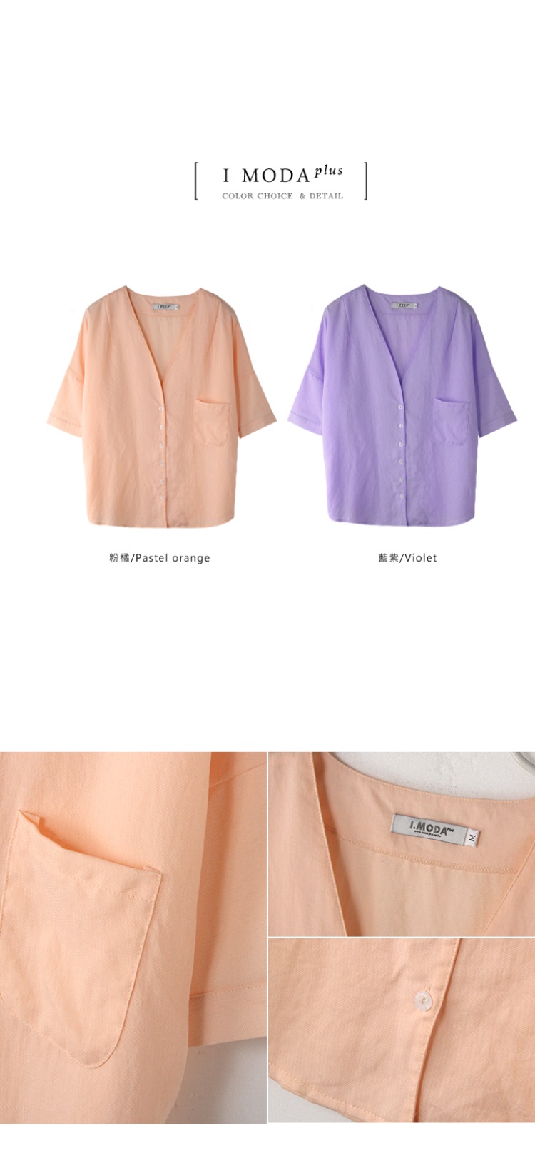 0603新品 單個人信貸試算色深V口袋造型排釦七分袖上衣.2色
