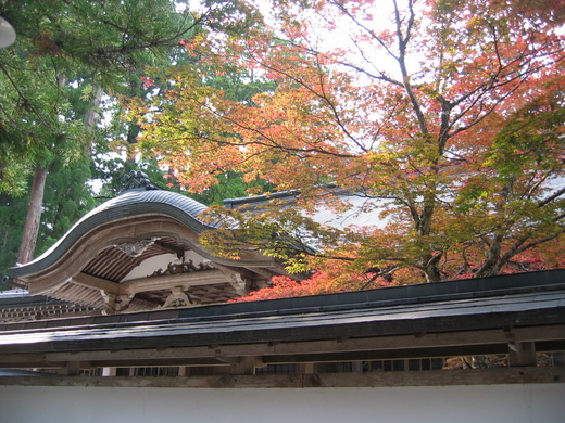 凌晨4時許,院內泛白的晨曦透窗而入.靜靜的打點起一身裝束.臨室的戒子們亦默默的準備今朝的活動.披上如法衣整齊了儀容逐個列隊出了院門.大夥是靜默的.一之橋前洗淨雙手覆印護身後朝向神聖的院所前進.參道上南無大師遍照金剛的唸誦聲,橐橐的木屐聲與嚦嚦的鳥鳴聲協調的融為一體.別於每日來回行走的心情.此回是寧靜與莊嚴的.行進的視線停留在30度角前方的石道上.昨日一番陣雨洗滌過後清新的空氣像在替陋習難斷的我們灌浴.—洗心啊~~.