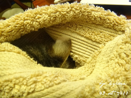綿花糖也馬上知道做錯的看著我們,無暇關照綿花糖的認錯,我和貓咪們趕忙到廚房關心飛翔的狀況,只見樂樂一直舔飛翔 ,我抱起飛翔才知道鼻子已經流鼻血和驚嚇時所噴出肛門腺體的味道,輕輕撫摸與安慰飛翔,這時聽到客廳裡傳來綿花糖被拔拔訓話的聲音...