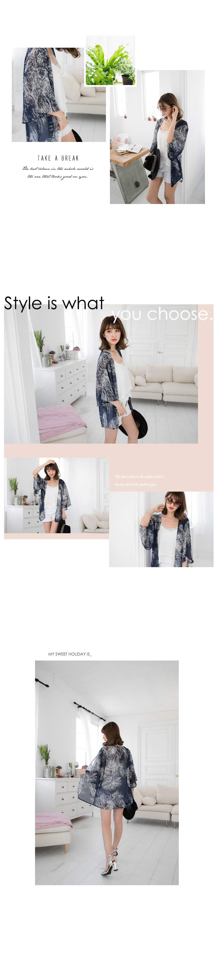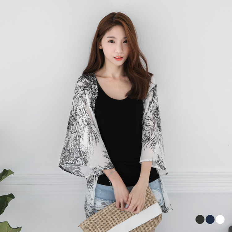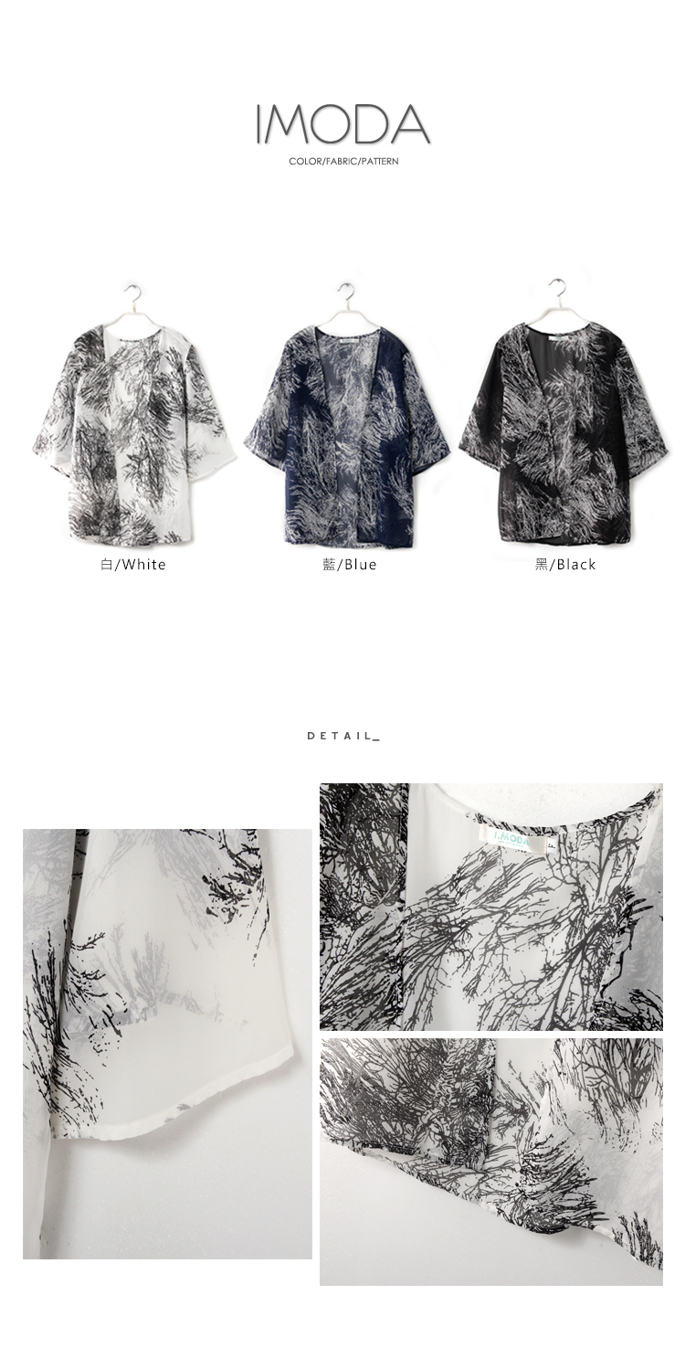 0615新品 樹枝印花薄透雪紡喇叭袖防曬罩衫.3色