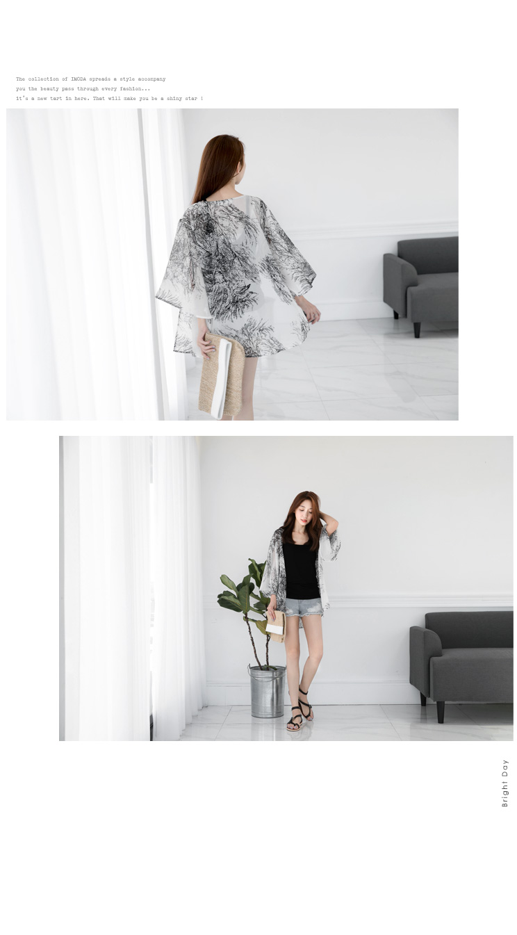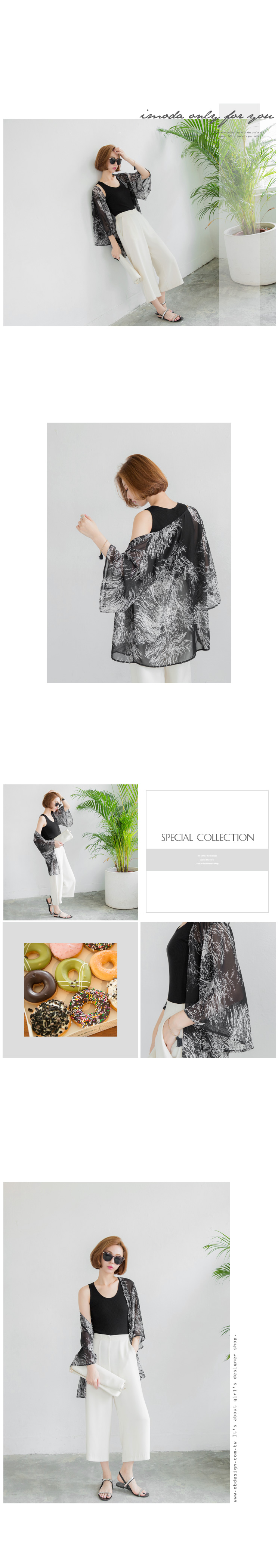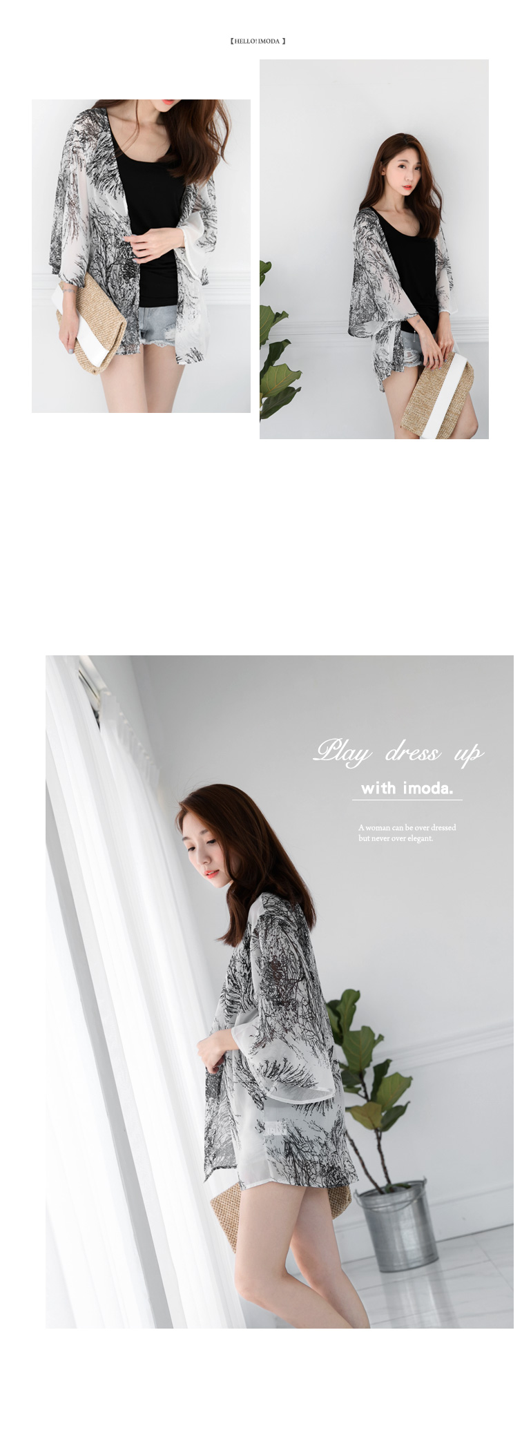 0615新品 樹枝印花薄透雪紡喇叭袖防曬罩衫.3色