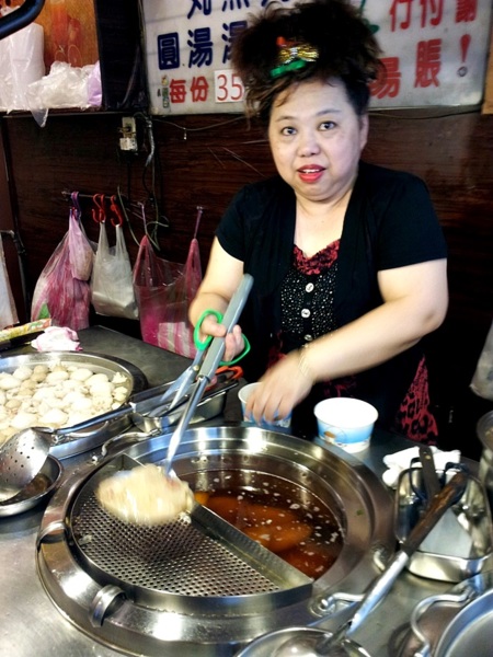 她時髦的造型應該是讓客人吃肉圓外