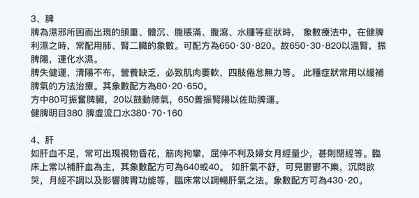 二、心脾兩虛,失眠,心悸健忘,身倦乏力,食少無味,舌苔白,脈細弱。配方:1)80,260。2)030,70。