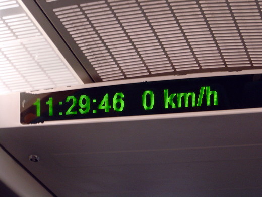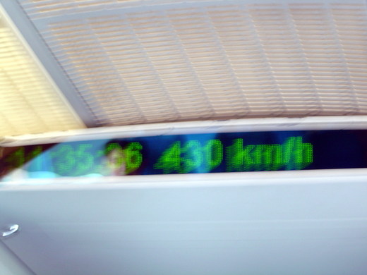 照片二是磁浮列車開始行進,從零公里開始加速,到達照片三時速四百多公里時,持相機的手已經搖晃得厲害,所以拍不到清楚的畫面;等到搖完了差不多又開始減速,還沒過上癮竟然就要下車了。