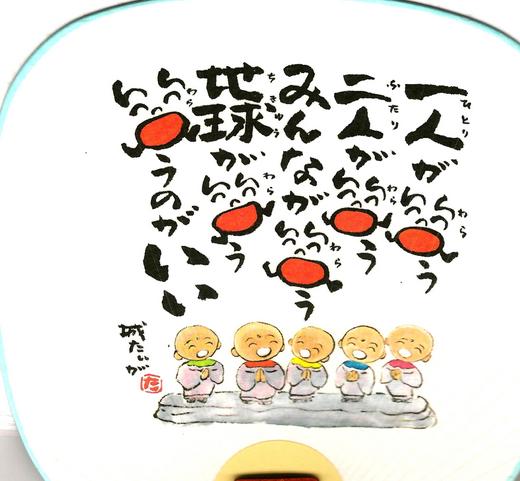 扇子上畫著許多的小和尚,每位臉上都洋溢著笑臉。我感覺到整個世界都在微笑。