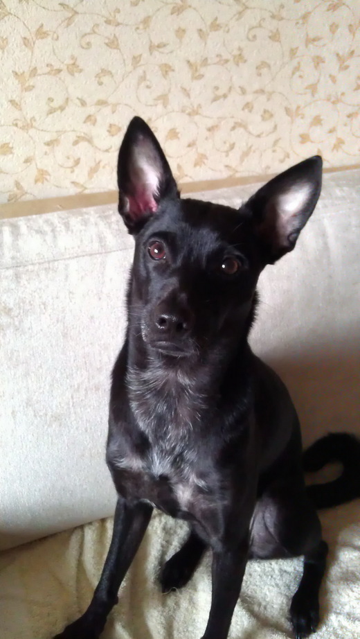 我想,默默因為是流浪狗,有點兒神精質,放她孤單一個在家裡,她就會咬壁紙、咬沙發,接著就咬自己的毛毛。
