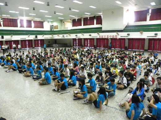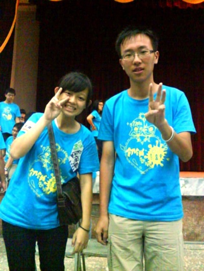 早操是由嘉商康輔社負責,靈車女孩們的表演實在精彩,有陽光宅男+濃情拿鐵,超級動感的晨間運動啊!!接下去是從十點到十四點連續四小時熱死人不償命的闖關,我跟璟漢負責的是「你是我的眼」,因為活動需要,場地移師到操場,曬得我們兩個頭昏眼花臉紅紅,我想我們應該都曬傷了!