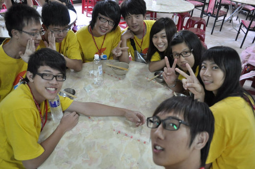 另外,讓我相當激賞的團隊特質:互助互信,在倒數第二天晚上,因為原本的睡袋在盥洗後被先用去睡了,隔天,竟然發起燒來,傷腦筋的是,前一晚安排了在閉幕上我所飾演阿信的串場,在吃了退燒藥情況仍未改善之下,傳道和活動組一同和我禱告,之後其他組員便分擔我的責任,重新規畫下午的閉幕串場,我也不敢閒著,為了出汗我開始拖著身體慢跑,感謝主,儘管仍相當虛弱燒總算是退去了。在看他們排演閉幕式,我忽然想到義文大哥以前講過一堂關於團隊的課:雁群飛翔時會呈人字形,一旦有雁子受傷生病,便會有兩隻伙伴留下來照顧他直到牠康復或死亡,而領頭雁疲憊時即會有其他雁迅速遞補上,我想,我是真的深刻了解義文大哥所要表達的了。這五天真的感謝永哥大哥及活動組全體組員的互助互信,多元觸發了我的思考。