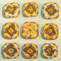(上圖為顧重光作品:迷彩柿子 1986 油畫 130*130cm)