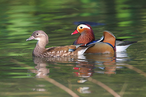 一轉身,柵門前的水渠,綠頭鴨正悠閒自在游著……