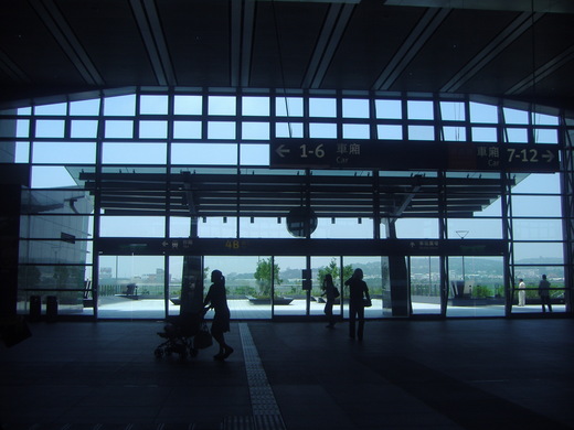 梨玲買票時,我上下打量高鐵的建築,有種站在星際總部大廳的錯覺,整體堅硬冰冷挑高的建築,到處充滿金屬冷灰的結構與色調,對映行色匆忙的旅客,以及外頭燦爛的陽光,真有時空錯亂之感!