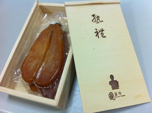 為了這個烏魚子的包裝,我設計了一個松木盒子,讓想要送禮的人可以感覺到這個大師的手藝被包覆在原始的木盒質感,附上一個小卡,也要設計與拍照,我還寫了詩的樣子的文字,在烤熟封包的時候,阿嬌特別遵囑我去買宣紙襯底在烏魚子下面。一整個的美味在未拆開前就已經流口水了。