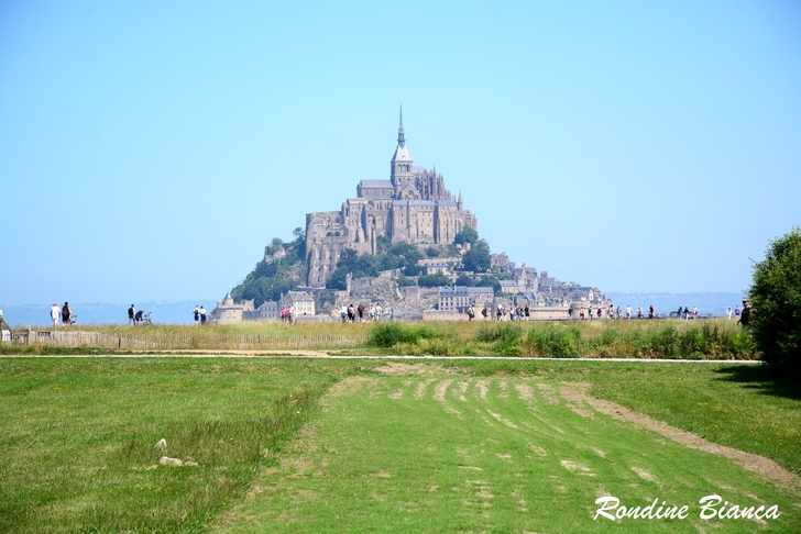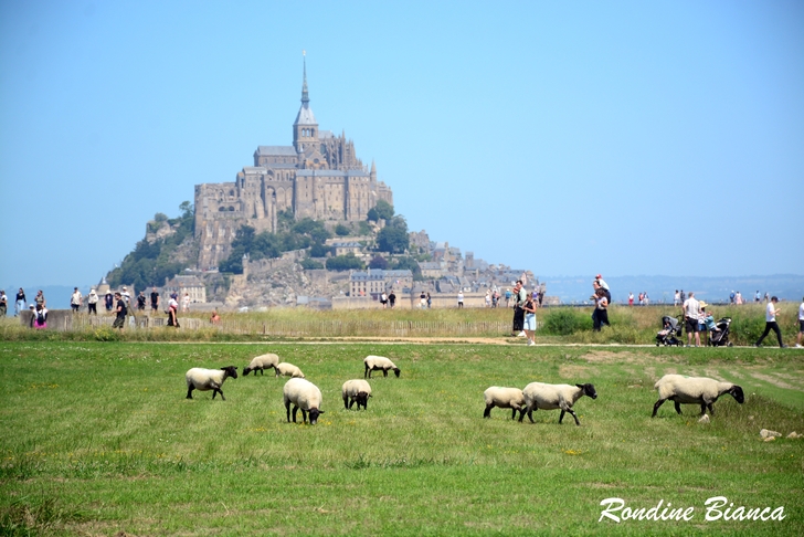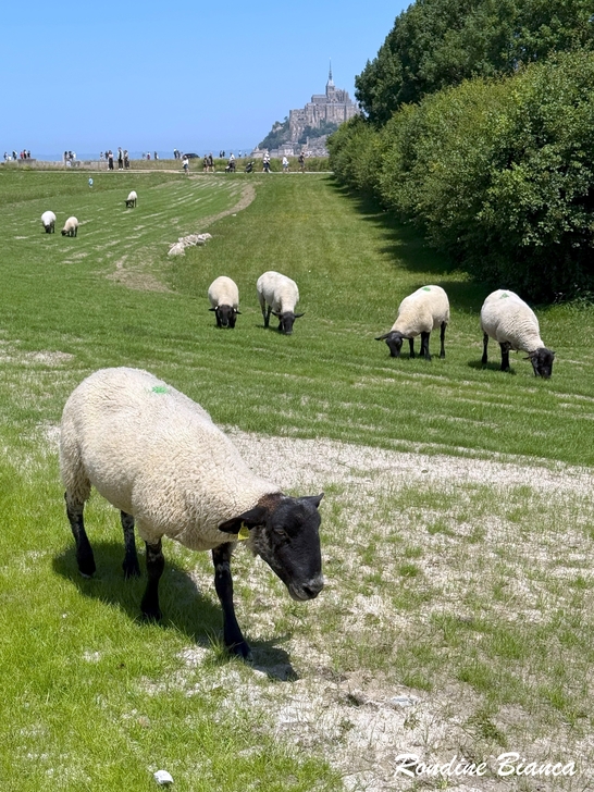來到聖米歇爾山正是午餐時間,餐廳與聖米歇爾山隔著青翠的草地遙遙相望。餐點是當地著名的烤舒芙蕾蛋捲及鹽沼羊肉。由於海水偶爾覆蓋,這裡的草類賦予鹽沼綿羊低脂且細嫩的肉質。