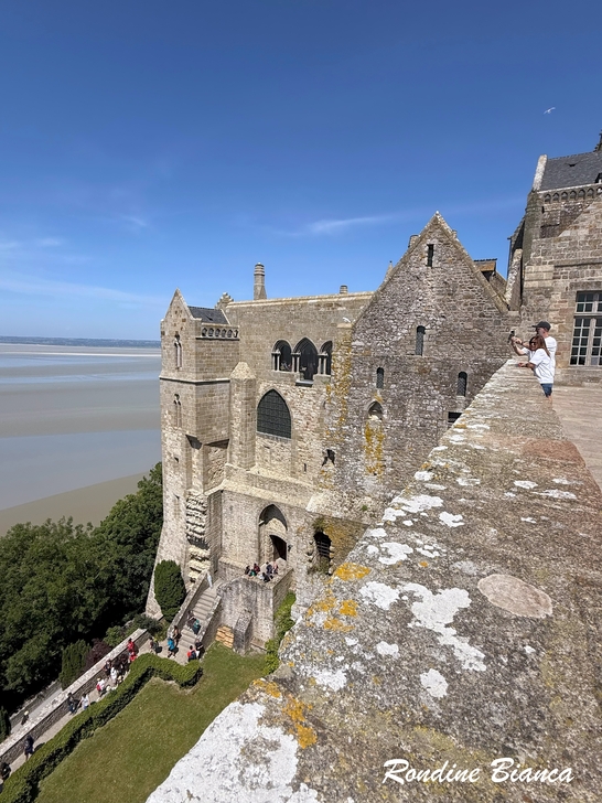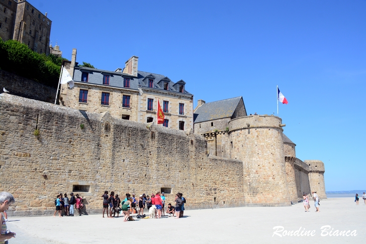 修道院位於海灣中心的戰略要地,在中世紀時期也是諾曼第公國的堡壘。英法百年戰爭期間,儘管該地區爆發了無數衝突,聖米歇爾山仍頑強抵抗,除了有堅不可摧的城牆守護,也要歸功於潮水的不斷漲落。