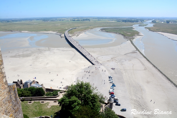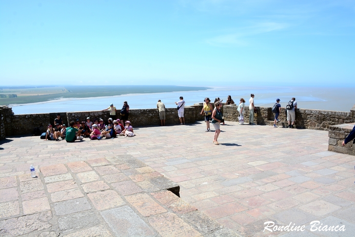 聖米歇爾山海灣綿延近 500 平方公里,直達英吉利海峽。極目遠眺,圍繞聖米歇爾山的沙洲及草地一望無際,庫埃農(Couesnon)河口以及連接聖米歇爾山和陸地之間的道路、棧橋也清晰可見,而遊人則變成猶似螞蟻的小黑點。