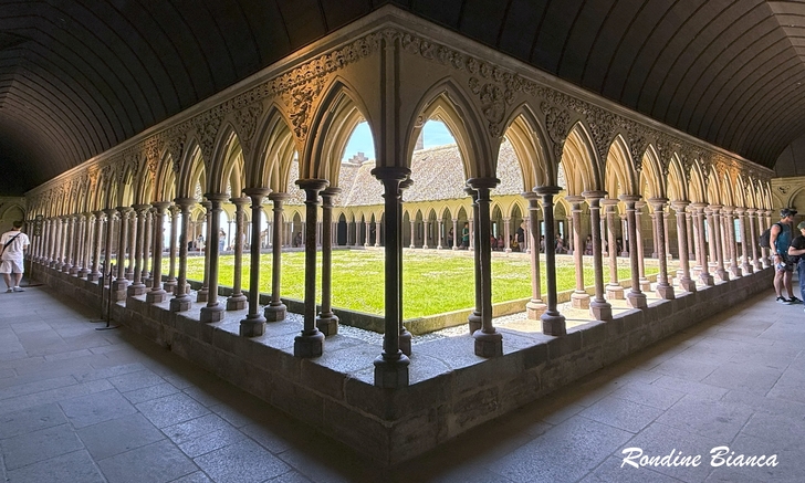 修道院迴廊位於「奇蹟」的最頂層,靠近天堂,也靠近上帝!迴廊由一個不規則的四邊形構成。與傳統佈局不同,並不位於修道院的中心。這個開放空間既是聚會場所,也是冥想之地。
