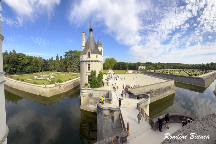 羅亞爾河多如繁星的城堡群中,以橋廊跨越河流成為水上城堡者,雪儂梭堡是獨一無二。近觀橫跨謝爾河上的雪儂梭城堡建築群,既有雄偉的氣勢,兼有靈秀的韻致。