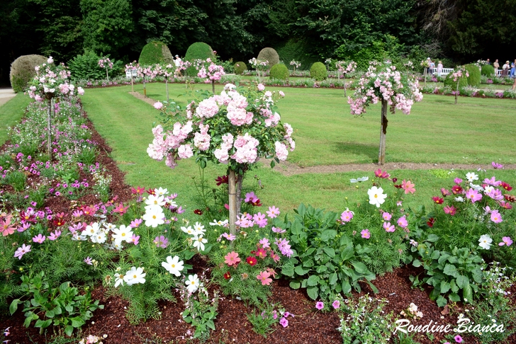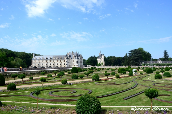 這座佔地 5500 平方公尺的花園,體現了凱瑟琳王后對義大利風尚的熱愛。花園由五塊草坪圍繞著一個優雅的圓形水池而建,面向謝爾河,並與綠園和橘園相連。花園中栽植高大的玫瑰和各色低矮的粉彩花卉,並點綴著球狀的黃楊木,和諧的佈局堪稱精緻優雅的典範。