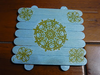 回歸到手工杯墊主題 : 如何做呢 ? (店長怕大家動作太慢, 將冰棒木片拼好杯墊先做好杯墊形狀.. 大家只要做下列簡單動作)... 這冰棒木片在文具店都買得到, 請格友們不要傻傻狂吃冰棒收集木片。(現在是冬天, 吃冰棒很冷ㄟ)