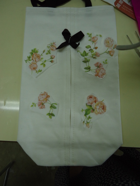之前在便利商店的店長啟蒙下學會蝶古巴特- 杯墊 , 之後克莉絲現學現賣的在教會分別帶了兩組組員玩玩手工 , 在家也自己玩2次 , 教會輔導誤以為我是蝶古巴特專家 (真是太抬舉我了..), 就幫我包下工程當手工藝老師 , 等到教會長老娘連絡我... 她已準備好了XXX 材料 ,喬定本週上課時間 , 越說越奇怪..這才發現大勢有點不妙 , 他們要做的是 蝶古巴特- 面紙袋, 不是杯墊阿??..., 晉升為手工藝老師(..好心虛的頭銜..克莉絲是手工不巧的人.. )其實沒作過以布為材質的拼貼經驗 , 要教面紙袋的拼貼, 至少程序要確認 , 雖然其原理應該是很類似 (如醫生接生小孩與接生小狗.. 都是接生,, 但獸醫與人醫還是有些不同吧?) , 還好花蓮有一姐妹做過很多次蝶古巴特- 面紙袋 , 連忙電話聯絡詢問細節求救 , 就這樣上台當老師...., 當日為怕自己說不清處.. 為學員準備程序單... 大家就按步驟來玩吧 !