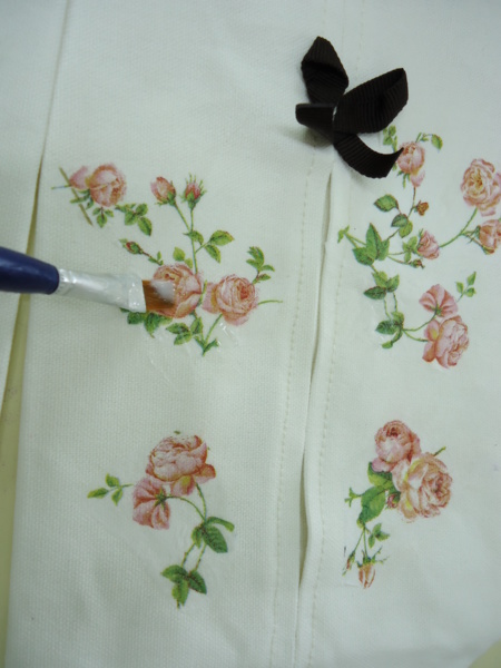 6 確認圖案黏牢於布上後, 用亮光膠塗滿整片布 當護貝... 等膠乾後完成作品