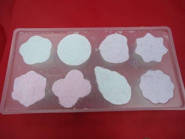 公司手藝極巧的瓊安成立”手作社”開課了!成立當時需要公司同事簽名為基本會員,克莉絲部門的同事通常成為成立社團被募集的主要人頭戶,因為公司規定成立社團需要有一定人數的簽署才會被核可。每次對募人頭的各社團社長本部門都一視同仁的說: 我們支持你..但我們不一定會出席你的活動喔。 若看公司社團成員名單,克莉絲與同事們彷彿多才多藝般,什麼社團都看到我們的名字。瓊安在幾個月遭走社團終於通過了核可,第一次的課程開在過年前一周,怕社員因手不巧做失敗產品而成為一次會員,瓊安花心思想的第一堂課是個”極”簡單的手作品 (完全不需手巧只要手沒有中風都能做)– 天然花香氛泡澡錠,克莉絲手雖不巧但對某些手作品是蠻有興趣,於是交材料費報名了這次的課程。