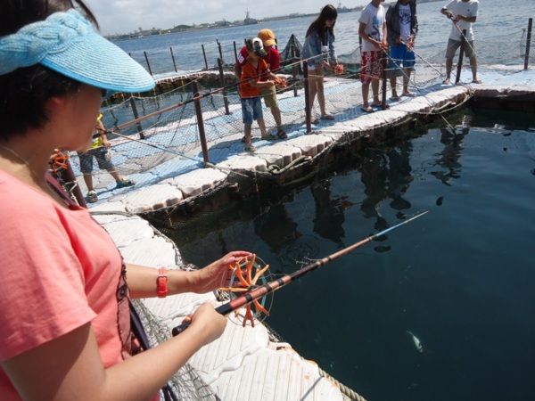@海洋牧場:首先搭乘快艇前往箱網養殖的海上平台,人手一竿,親自餵食兇猛的海鱺;看似不受誘惑的烏賊,與您展開一場比心機、鬥耐力的耐力拔河賽,玩累了,此時船家已將碳火升好,豎耳傾聽那多汁肥美的碳烤海蚵,熟透張殼的ㄅㄥㄅㄥ聲,餐廳現煮的海鮮粥讓遊客品嘗,享受漁村生活之樂趣。