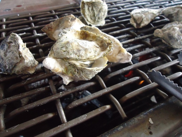 拿到的魚餌比烏賊還大,克莉絲真懷疑可釣到烏賊? 日頭赤炎炎,克莉絲的同學們大多躲曬不到太陽的海上餐廳內直接烤餐廳無限量提供的海蚵吃,沒海釣過烏賊克莉絲頂著大日頭....站30分鐘就沒耐心了。同學的小孩也沒釣到任何東西,將魚餌變成烤魚。克莉絲決定還是到陰涼處烤海蚵。 討海人的生活真辛苦。