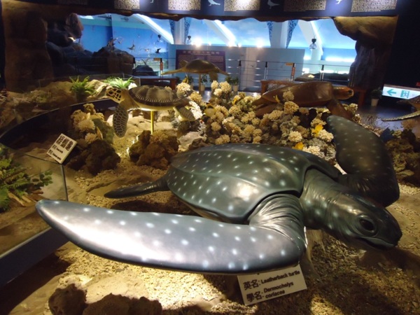 @接著再搭船到望安島(約30-40 分鐘)此乃綠蠵龜的故鄉。此島位於澎湖群島的中心地帶.為澎湖第四大島。我們驅車至綠蠵龜博物館速速參觀。克莉絲是跟團所以有遊覽車代步工具, 若是自助行的人就要騎機車來代步囉。