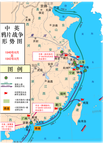 鴉片戰爭以前,中國是一個獨立自主的皇權專制國家,清政府行使全部主權;鴉片戰爭之後的南京條約以及其後的一連串不平等條約,使中國部分主權遭到嚴重的破壞,鴉片戰爭開啟了之後百年受到西方殖民主義侵略的歷史。