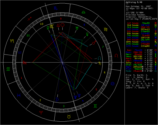 第7宮有龍頭(南北交點)與火星,難怪成為國民革命軍之父!蔣公比毛澤東大6歲,海王星在金牛尾,沒有與冥王星同宮,所以威力略遜。
