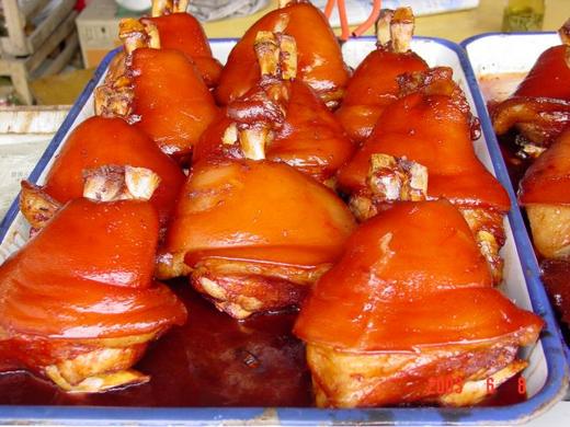 萬三蹄肉質酥爛,人口即化,肉汁香濃,肥而不膩,皮肥肉鮮,甜鹹相宜,滋味無窮。周莊萬三蹄尤以沈廳酒家享有盛名,萬三食品廠生產的真空包裝的萬三蹄益發受人青睞,常年供不應求。筆者2006丙戌年春曾帶著老媽、舅舅與叔叔去周莊旅遊,萬三蹄的確好吃~