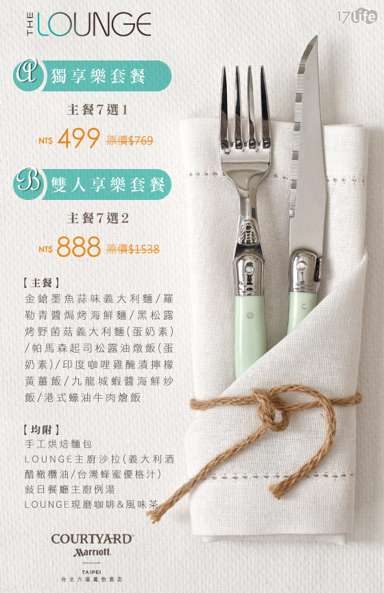 17life團購熱銷機推→台北六福萬怡酒店《The Lounge》-享樂套餐