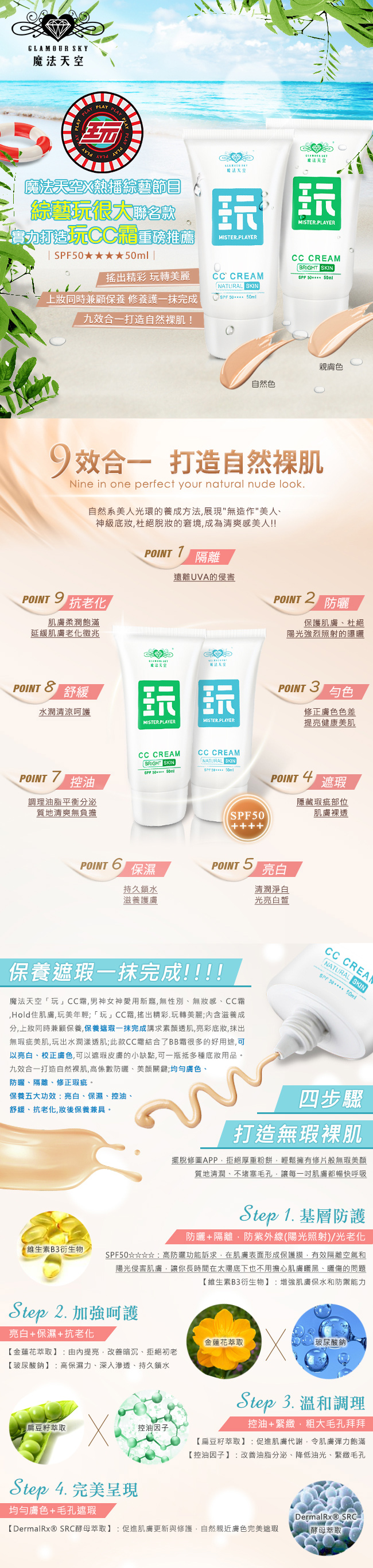 【Glamour Sky 魔法天空】玩CC霜 自然色SPF50★★★★(50ml/支)