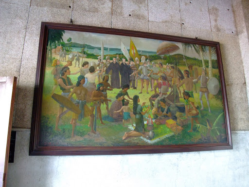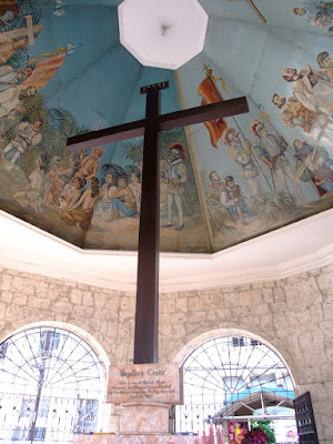 十字架的上方,彩繪著當年麥哲倫初登cebu city的景象