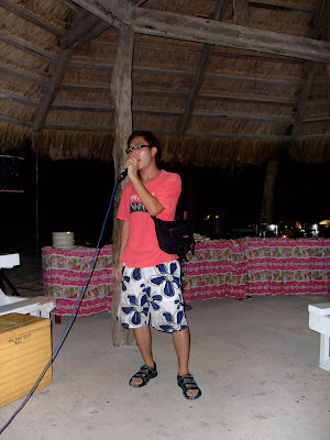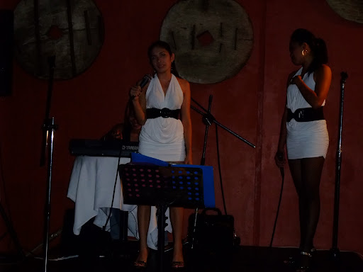 晚餐,我們請了菲籍辣妹來個歌唱趴,結果琴師沒來,整個尷尬,辣妹只好先清唱了三首歌壓壓底