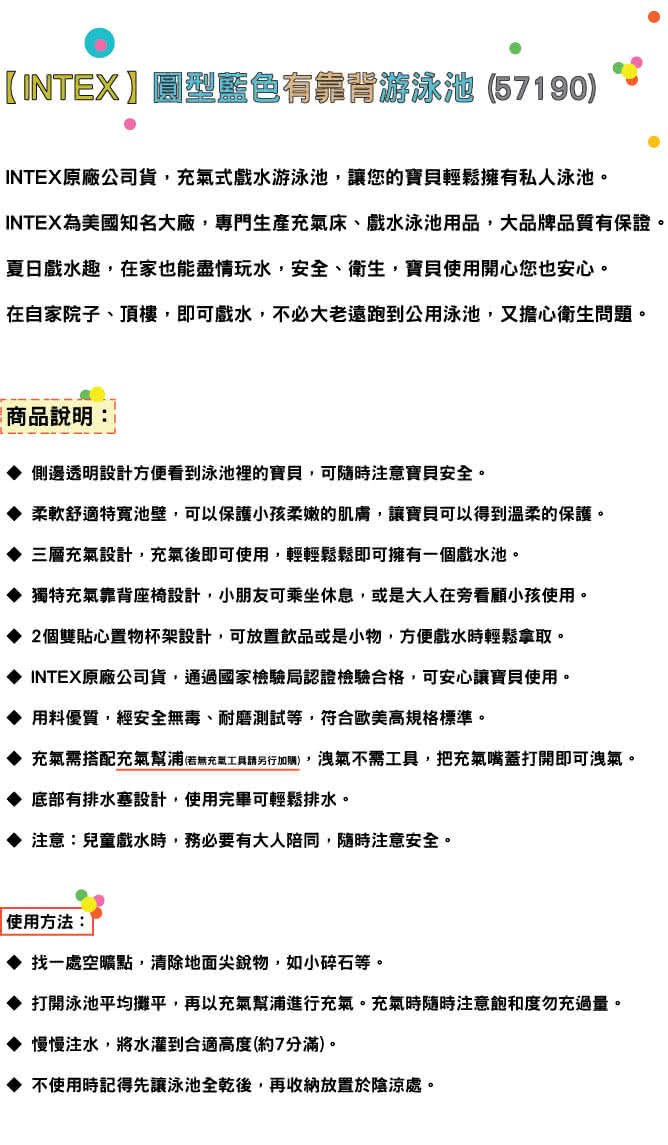 雙11特惠活動,搶到賺到:【INTEX】圓型藍色有靠背游泳池 590L(57190)