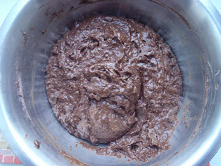 3. 乾料(小麥粉、蕎麥粉、可可粉、小蘇打粉、鹽、粗糖)均勻過篩到另一個盆中