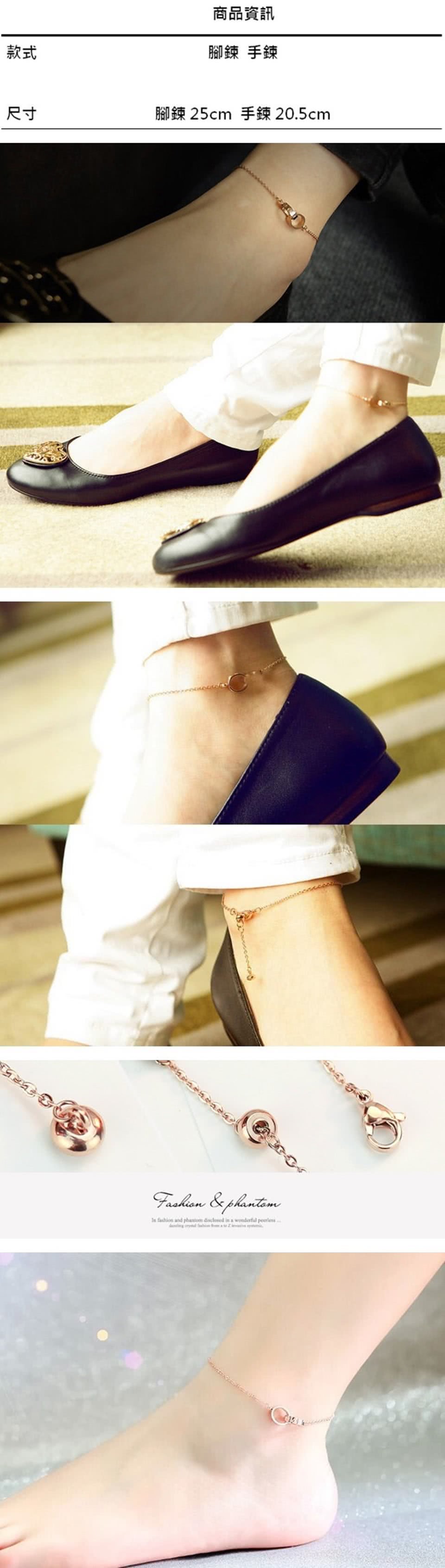 材質:鈦鋼鍍玫瑰金色 打開女孩的飾品盒,讓我們從這神秘的小盒子中抓出讓妳的比例看起來更完美的玫瑰金腳鍊單鑽腳鍊流行飾品流行配飾情人節母親節生日禮物。今天就跟著女神一起站在穿衣鏡前,靠著這一條玫瑰金腳鍊找出最適合妳的風格吧!隨著女性流行飾品垂墜到胸前的長度,在視覺上會拉長臉型,假如妳是可愛圓臉或嬌小身材的女孩,那項鍊絕對是妳的好朋友!而且流行飾品有凸顯胸線以下魅力的特性,更能增加素色穿著的豐富度喔!長髮女孩請注意!雖然飄逸長髮很受男生歡迎,但如果頭髮已經長過肩膀且總是往前垂到胸前,這時候就要慎選飾品,否則會讓整體造型變得很複雜!女性飾品已經很閃耀,最好是可以穿一件連身短洋裝,該露的地方露到了、想強調的重點也強調了,這才是最恰到好處的迷人穿著! 跟著女神拿著流行飾品在鏡子前比試一番後,有抓到穿搭重點了嗎?下次出門約會可別忘了飾品的好搭秘訣喔!
