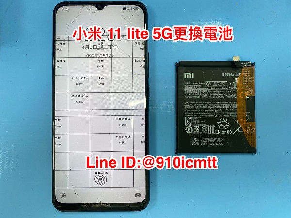 小米 11 lite 5G 更換電池 QF手機快修聯盟(豐原iphone手機維修