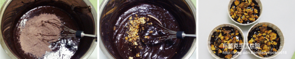 8. 攪拌好的麵糊倒入模型中,上面再灑上剩下的碎核桃。