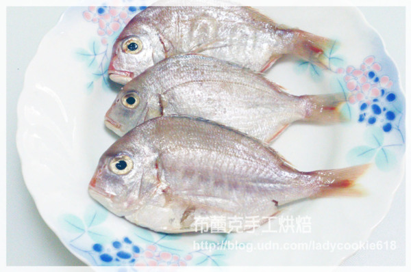3. 準備一盤子,將肉鯽魚雙面均勻抹上適量米酒和海鹽。