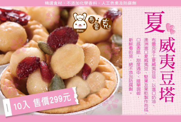◎夏威夷豆塔最佳品嚐期限 : 常溫10天,開封後請儘速食用或冷藏保存。
